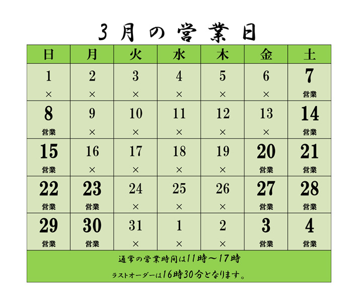 茶房 京都・東山茶寮 3月営業日のお知らせ